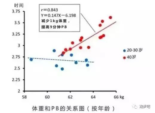 一项研究表明30多岁时的体重和马拉松的成绩太大的关系;而40岁以后,二者的关系却是非常密切。