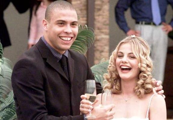 作为足球史上最为传奇的球星之一,罗纳尔多经常在场上上演帽子戏法,而这位生性风流的巴西人在婚姻场上也完成了“帽子戏法”。1999年,罗纳尔多与巴西女足球员米兰妮结婚,两人育有一个儿子,不过婚后罗纳尔多依然经常光顾夜店,最终两人在2003年离婚。