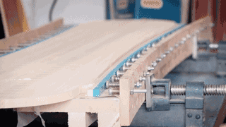 将板刃的木材根据板子弯曲的程度贴合地安装,并用锤子敲击保证固定。