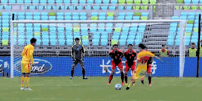 2017年都匀国际青年足球锦标赛第二轮,中国U22国家队迎战朝鲜U22国家队。此役中国队再次获得了11打10的机会,最终依靠刘洋的任意球世界波破门绝杀对手。
