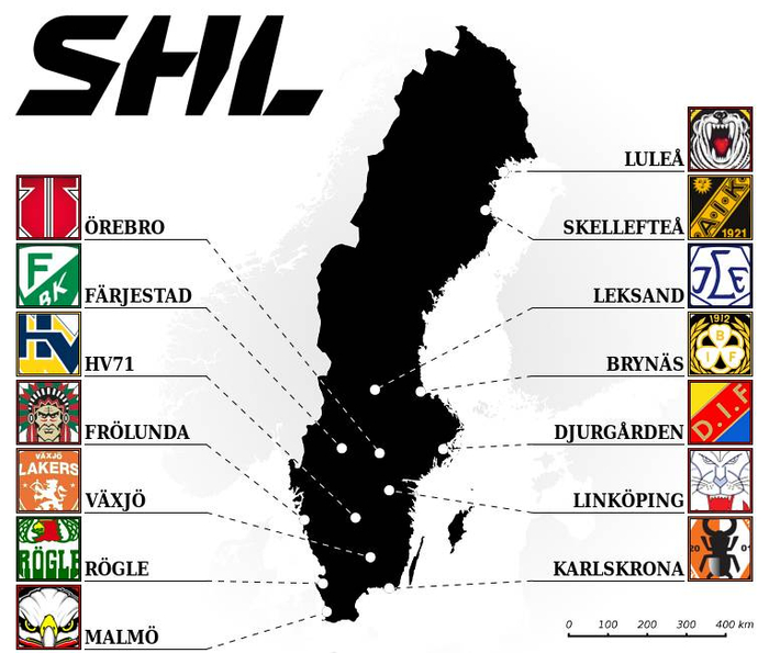 如今瑞典冰球有大致5个级别的成人联盟和队伍。最高级别的SHL(瑞典冰球联盟)在欧洲是水平仅次于KHL的职业冰球联盟,绝大多数不在北美打青年赛的瑞典球员在进入NHL之前都会在SHL打球。SHL的高水平也吸引了很多其他欧洲甚至是北美国家的球员,如今有来自10个不同国家的球员参加SHL的比赛。