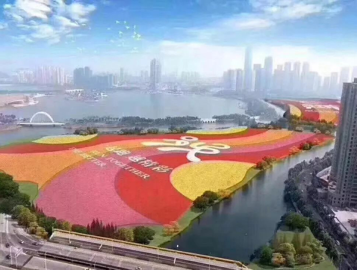 眼前是南北两片总面积约34.5万平方米的百日草花海,由花草编织出“绍兴欢迎你,welcome to shaoxing”的造型,跑过公园内的这座桥,迷你马选手就会在花海中冲线。