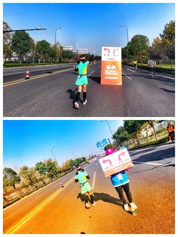 全半马分界处设有专门裁判,有些全马选手想转跑半马都被裁判截下来鼓励完赛。