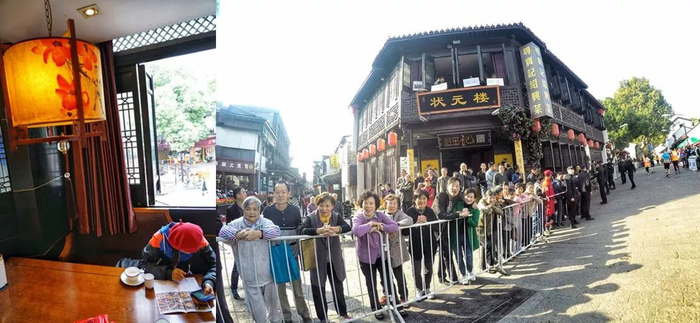 前路简直惊喜不断,这时来到仓桥直街,就如那首诗——柳疏桥尽见,水落路全通,道路建设有点像佛山的岭南新天地 ,但道路更宽广,江南特色尽收眼底。
