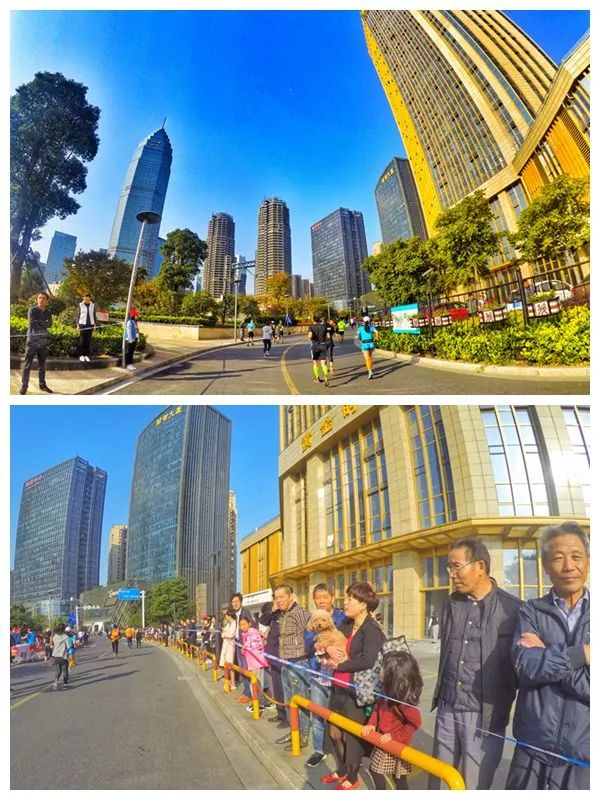 这时转入商业街,两旁的群众更加热情了,这才10公里左右,但赛道中几乎没什么跑者了,沿路群众比跑着的选手还多。