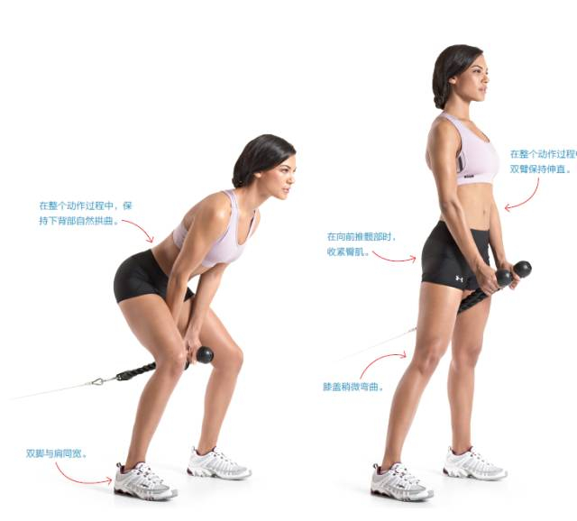 向前挺髋,并抬起躯干回到起始位置。