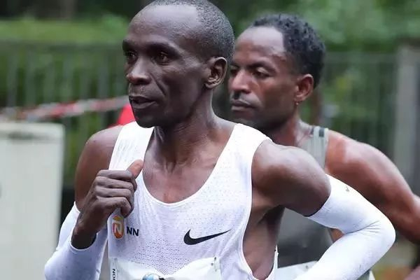 最终,基普乔格第一个冲过终点,2小时03分34秒,再次与世界纪录擦身而过。