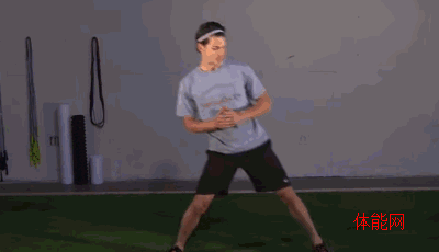 侧步蹲时上半身虽然呈下压,但背部一样需打直。由于所有弓箭步动作均会伸展到腰部,动作中容易出现拱下背,需特别留意上半身是否保持挺直。