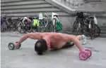 130斤体重站立式完成动作健腹轮可轻松承受。
