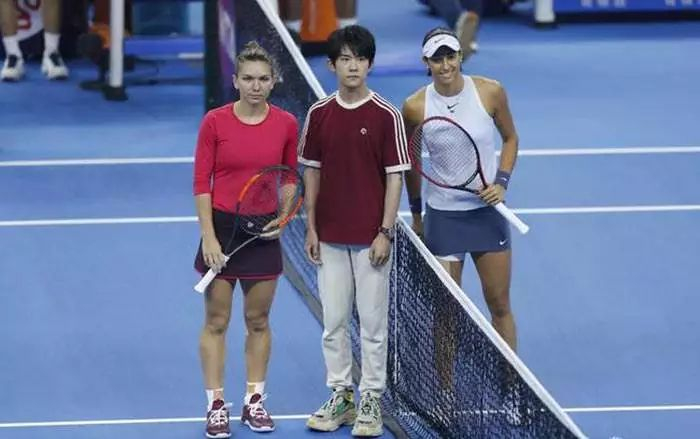 ▼易烊千玺在挑边中合影哈勒普、加西亚