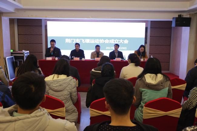 2017年11月29日, 荆门市飞镖运动协会在荆楚理工学院书香苑成功举办成立大会。荆门日报社副社长高萌、荆楚理工学院公共体育部主任徐泽民、荆门市民间组织管理局社团科科长李广志、荆门市文化体育新闻出版广电局群体科科长高福琴等相关领导出席了本次活动。