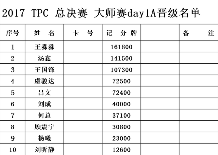 30日下午15点大师赛DAY1-B准时开赛,参赛的朋友不要错过。附上大师赛DAY1-A组的晋级名单。