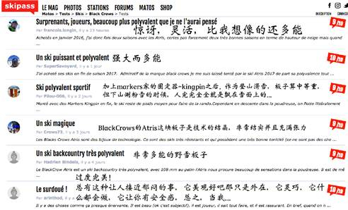 其实, 还有⼀件新款我没有提,留到最后,那就是升级的Black Crows最重要的成员-Atris!翻了⼀下法国重要的滑雪信息网站Skipass,随意的翻看了⼀下留⾔,是这样的: