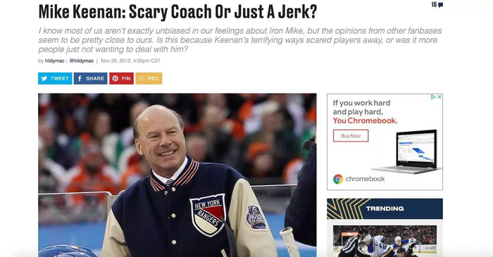 除了罗尼尔,痛恨基南的也许还有前温哥华加人球星特弗里-连顿(Trevor Linden),曾经万众瞩目的新星,几乎可以与现在的康纳-麦克戴维相比。二轮选秀被加人选中,30粒进球加冕年度最佳新秀,20岁就成为温哥华加人队长,看似美好的一切都在那年基南执教加人期间(1997-99赛季)毁于一旦。