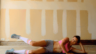 动作要领:侧躺时上身被手肘撑起,双腿自然弯曲,双膝一开一合,像蚌壳,双脚始终贴合在一起。每个侧面做20-30次。