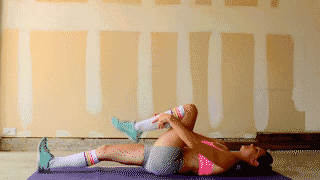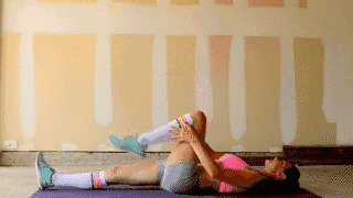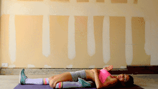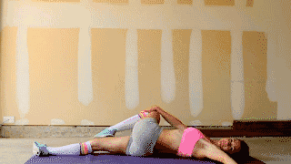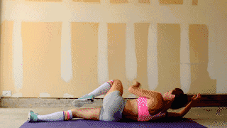 动作要领:平躺在地面,将臀部抬起,保持这个姿势30-60秒。加大难度:抬起一条腿。