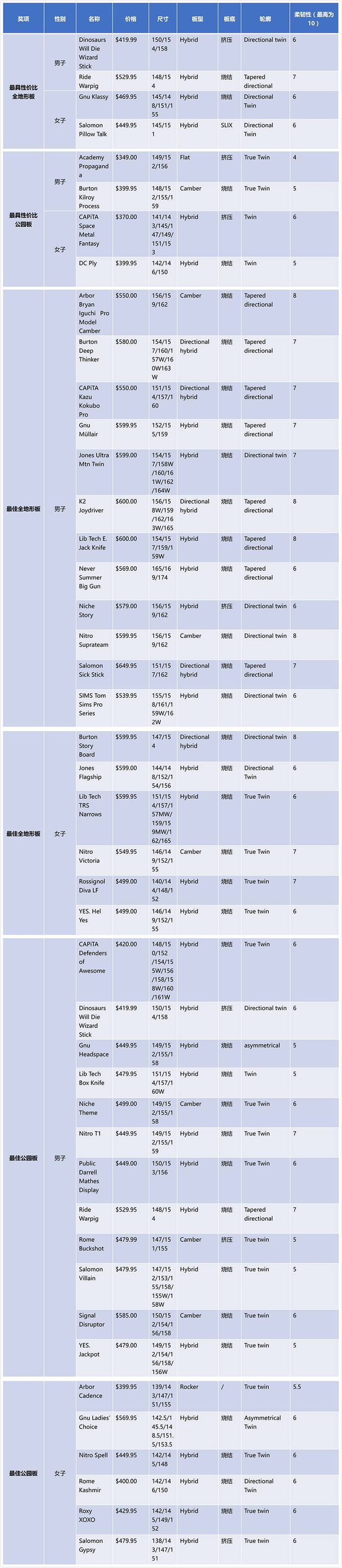看了“身经板战”的他们遴选出来的成果,相信这个雪季的新雪板你已经有了答案。小编最后提醒一句:测评仅供参考,体验才是王道。