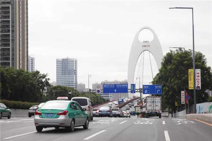 依次经过广州若干座大桥,首先是广州大桥、海印桥、江湾桥、海珠桥、解放桥,一直跑到人民桥。