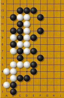 黑1立忍住提子的冲动绝妙!白2打,黑3通过“打三还一”净杀白棋。白2如在其他地方抵抗已无法做活,请棋友们自行验证。