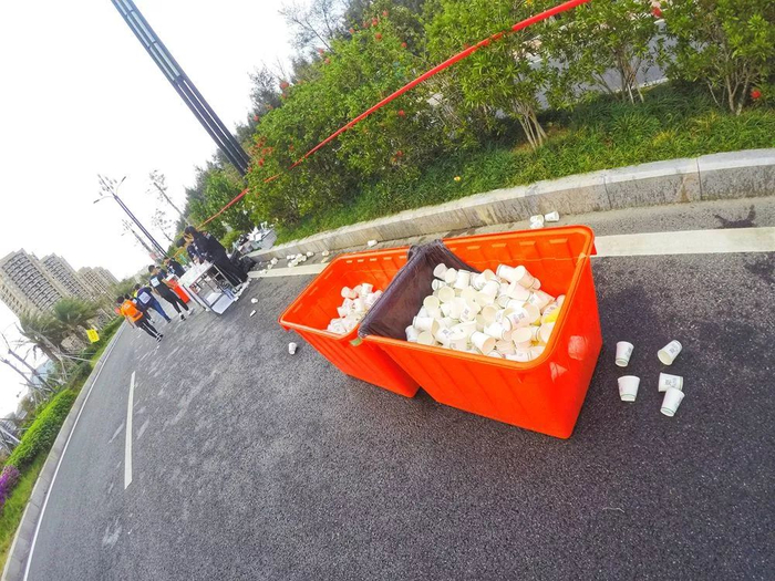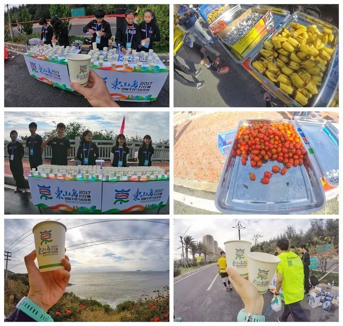补给有盐丸、香蕉、甜甜圈面包、小番茄,还有像大鹏马一样有葡萄糖水喝~有强逼症的志愿者把水杯摆得好整齐呀~