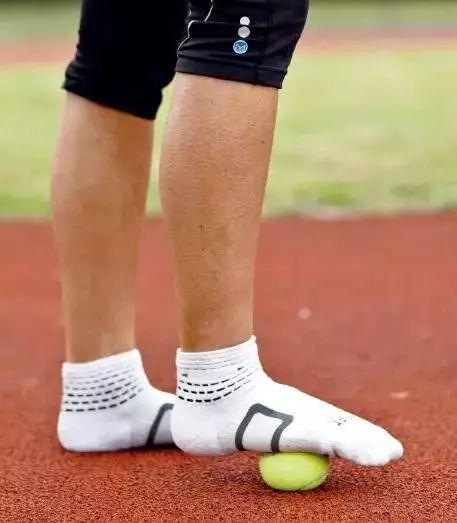 裸足踩在一个网球上。把你的体重放在球上,让它从足跟沿着足中部向足尖滚动。