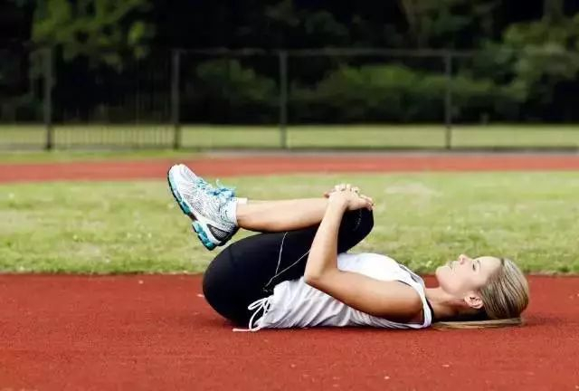 平躺在地上, 尽可能地让双膝向胸部靠近。