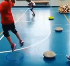 小学生适用,提高球性的一项,同时具备趣味性,可以选各形状的海绵体让队员互垫。
