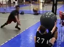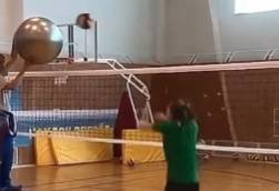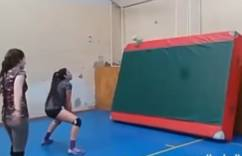 也是运用瑜伽球作为大目标,训练二传的,这个道具在大陆可以换成:小型呼啦圈,效果更佳!