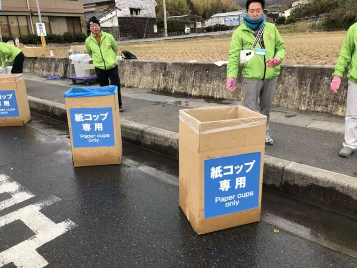 垃圾桶,在赛道上就已经分类,有的上面写着“纸杯专用”,有的写着“可焚烧的垃圾”,所与人都是按照分类去扔垃圾的。跑过一个厕所,会看到指示牌写着下一个厕所多少公里,方便选手决定是否现在就去上厕所。很多男厕所是没有门的,加快上厕所速度,女厕所有门,但是男厕所排队人很多,也没有人会去女厕所,日本选手对指示牌就是绝对的遵守的指令。