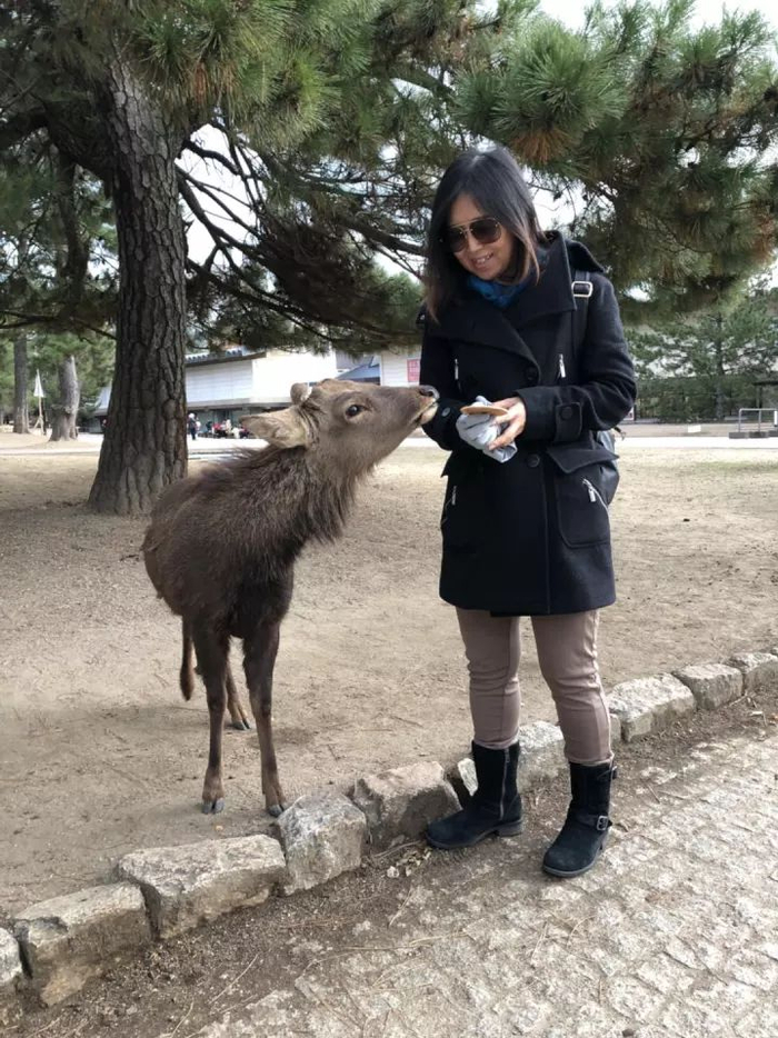 马博会附近就是奈良公园,也是这座城市最大的公园。到奈良来不能不去喂小鹿,在公园附近买小鹿饼去喂小鹿,是这座城市人与自然和谐的非常到位的互动体现。这里的建筑古迹很多,汉唐文化在这里有深深地烙印。城市里的门店招牌,都是非常漂亮的书法字体,都是汉字,东方的感觉是360度立体的。