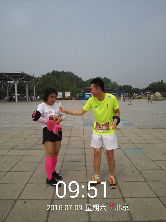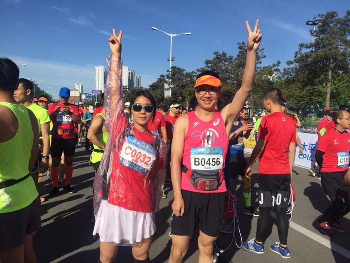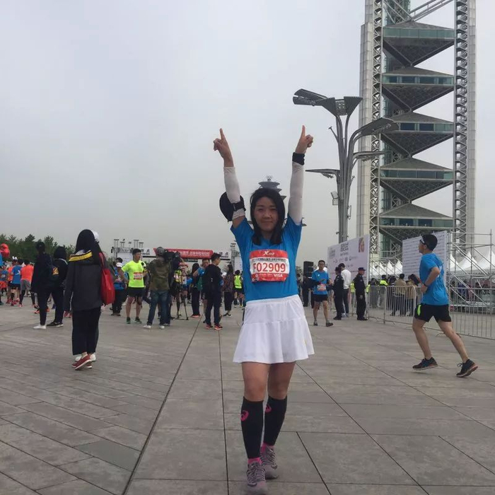 跑步到马拉松,是很自然的事情。2016年4月,跑步将近半年的付华荣,报名了自己的第一个半马——北京长跑节。当时她啥也不懂,穿了一双休闲鞋就去了,结果跑了1小时51分。“可能平时跑量特别多,所以成绩还算可以。但当时真的是傻跑,很容易受伤。”下半年,她又参加了鸟巢半马,跑出了1小时46分的成绩。