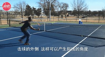 做对角截击时,球拍要在身体前完成击球,并且要打球的外侧面,这样才能打开角度,让球的运动轨迹形成斜线。除此以外,你还要根据来球的位置,灵活调整自己的重心。