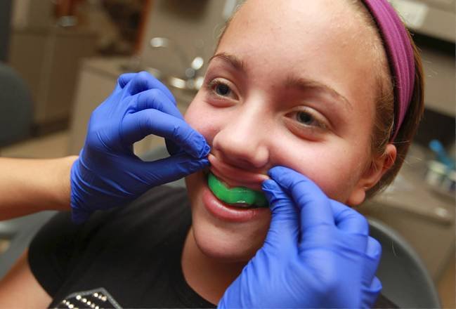 建议使用定做护齿。每个人的牙齿皆不相同,定做护齿较普通护齿、加热咬合式护齿更加贴合、更厚、接触面积更大、更有弹性,能更大幅度吸收能量,从而减少作用于牙齿及脑部的能量。