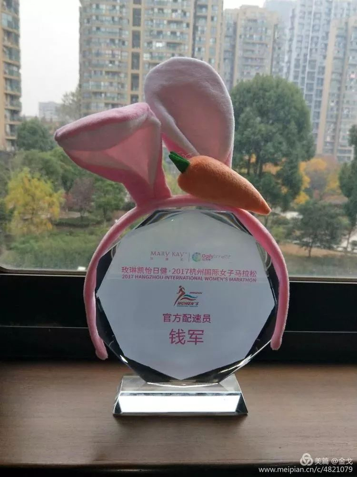 江岸边、高校校园里、主干道的两侧……下沙的角角落落,总有那么一抹风景,让人忍不住端起手机去留下一份记忆。就这样杭州女子半程马拉松完美邂逅下沙的美景,碰撞出迷人难以忘怀的一道靓丽风景。7000美女齐刷刷站在我身后叫喊着,自己穿戴着轻力兔子装备,顶着300的气球,第一次站在第一排出发,出发前和形象大使伊一,大神李文杰合影,近距离感觉到她们的正能量,枪响出发,一路和覃飞小飞机,边看表边控制配速,毕竟我们是这些女跑友的参照物,跟着我们3小时到达终点,兔头格格出发前一再关照稳住配速。一路上我们300的配速员认真负责,还一路给那些跑不动的跑友加油打气,很多要求合影的我们也都尽量满足,就这样摇摇晃晃到终点,很准时300踏上计时地毯。第一次参加这样超高颜值的比赛,整个赛事从筹备到收尾倾注了很多人的心血和精力,女马举办得非常成功,最起码每个女跑者都洋溢着幸福快乐的笑容。这就是成功的开始!