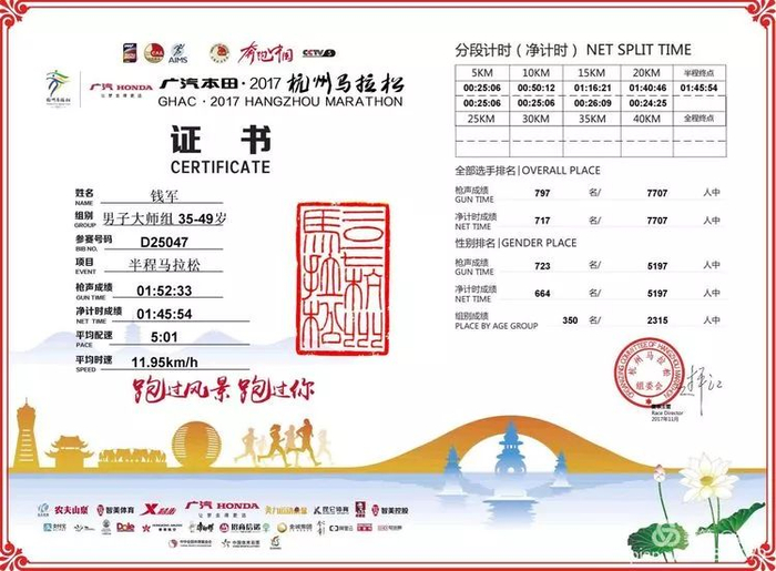 这次杭马服务比任何一次杭马都要完善,终点的拉伸,一路的乐队嘶吼,虽然我不懂摇滚,但也的确被他们的呐喊声所鼓舞。南方城市小而精致,杭马在主城区辟出了整个环形赛道,把杭州,完完整整的杭州,呈现在了42公里的圈里,恰值杭马30周年的时间,赛事方在赛道的安排上,确确可谓用心。杭马奖牌叫做杭马印很经典,美轮美奂,漂亮又有内涵,很好的体现了杭州的古典和现代,跑过风景跑过你,在最美的杭马,遇见最美的你们!