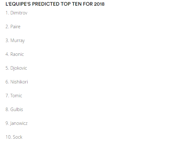 网球预测,是一项风险系数极高的高危行业。回望五年之前的2013,法国《队报》曾预测2018赛季的年终前十球星——迪米特洛夫、佩雷、穆雷、拉奥尼奇、德约、锦织圭、托米奇、古尔比斯、扬诺维茨与索克。如今,这份榜单已成为备受群嘲的笑柄,2018年末的确还有一年才到,其他人不知道,但至少很难想象,托米奇、古尔比斯与扬诺维茨明年能从已堕落至百强之外的深渊中奋力崛起成为年终前十的精英。