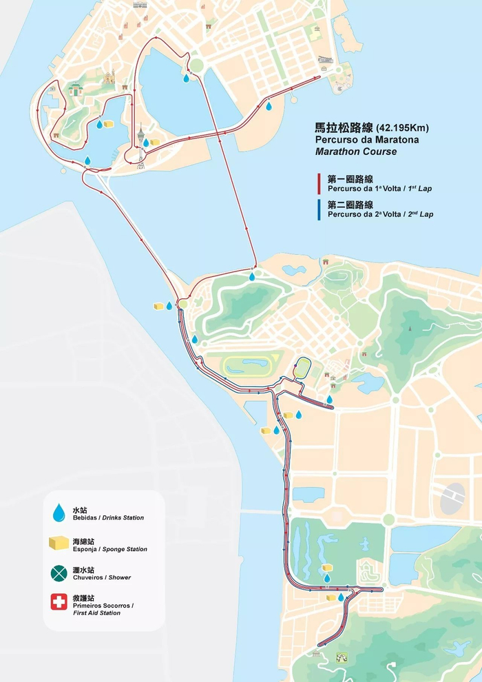早几年的全马赛道是半马赛道跑两次。前年开始作出了少许改变,加多一条嘉勒庇大桥,全马路段只在后半程重覆跑路凼区两次。
