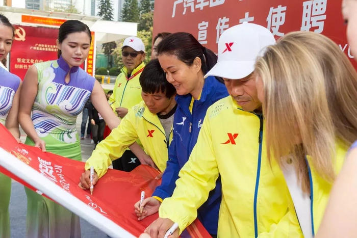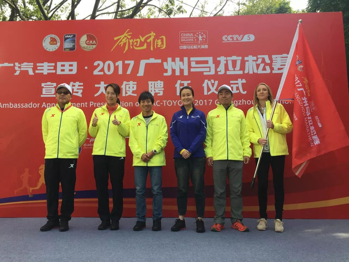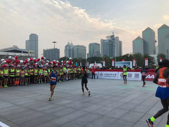 广州马拉松,我是作为宣传大使参赛的,所以和特邀选手一起站到了队伍最前面。发枪之后,我就跟着女子第一集团一起跑了。