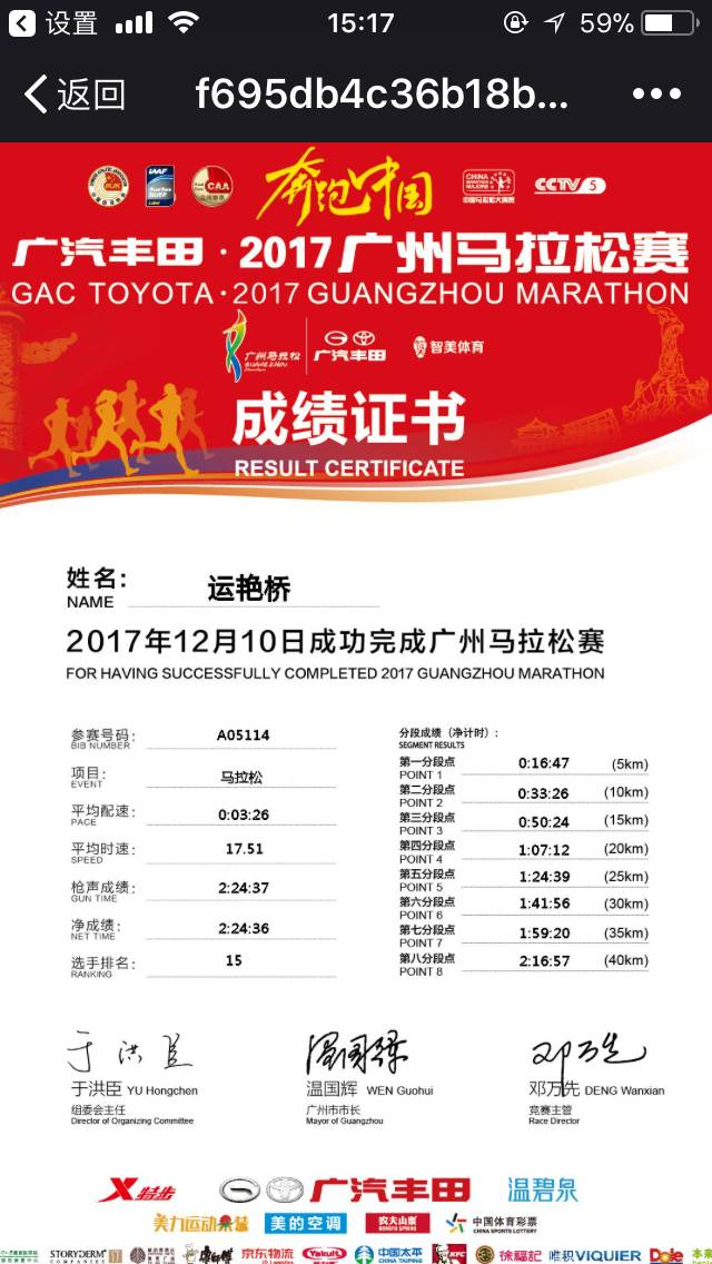 2017年12月10日,继上半年秦皇岛马拉松PB226之后,我在广州马拉松比赛上再次PB:2小时24分。