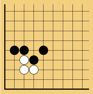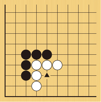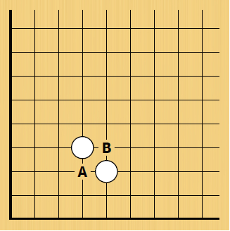 假断点棋型二:白棋是小尖棋形,A、B两点白棋必得其一,所以没有断点