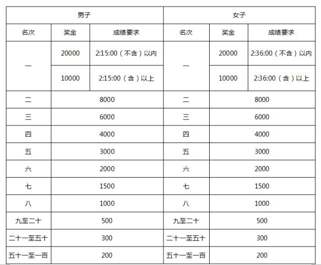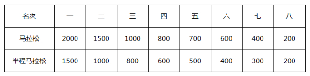 【马拉松-名次奖】(税前人民币/元)