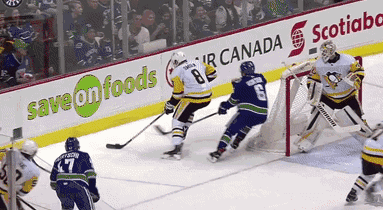 在企鹅防守区里这次球权转换有一些运气因素,但是防守动作反应太慢也是一大原因。