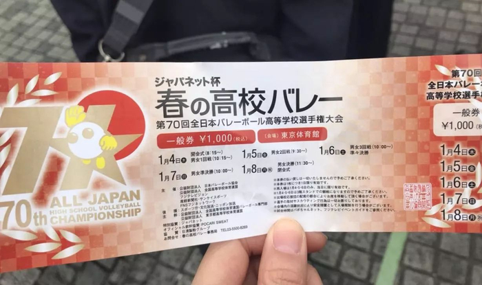 2018年的“春高”是第70届,定于1月4日至8日在东京体育馆举行。问了一圈周围喜欢排球的朋友,岁末年初大家都很忙,所以我就决定自己买张票去现场感受一下。