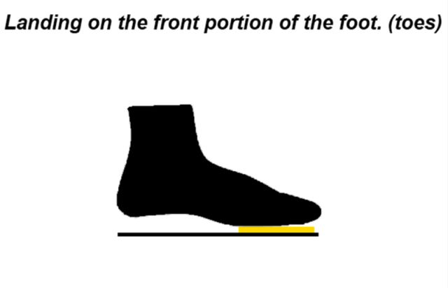 其实,着地方式根本不是最重要的,重要的是接触地面时脚相对于身体重心的位置。也就是说,关键是脚接触地面时的位置应当靠近身体重心(或者说基本在臀部正下方)。当着地位置过于靠前,超过身体重心,膝盖被迫伸直,才会导致身体受到更大的垂冲击力,就容易导致关节不得不非常快的吸收地面的反作用力,这样就会增加损伤的可能性。