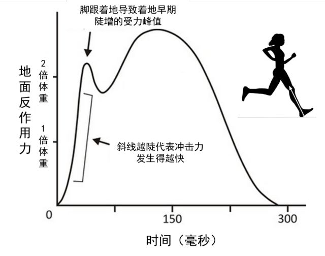 也就是说,无论用什么部位着地,其实总的地面垂直反作用力在脚跟着地和前脚掌着地之间,几乎没有改变,改变的只是受力的过程,也即改变了冲击的大小。