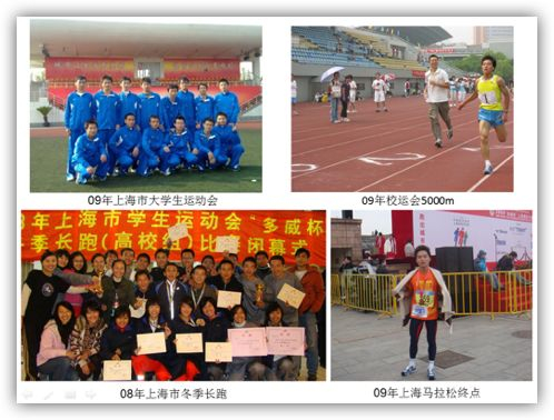 09年开始有了更多的参赛机会,也开始渐渐地接触了马拉松。直到11年大学顺利毕业以前,每年的“校运会”,冬季环校园跑,上海市大学生运动会都会参加,但因为没有特别的专项,也缺乏比赛经验,并没有什么突出的成绩。