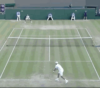 诚然,纳达尔接发站位的变化之极端——靠近底线或是撤至挡板,会给对手造成怀疑和困惑。但这一策略偶尔也会付出代价,对手在发球时得以撕开更大的角度,同时为那些愿意连续进攻或发球上网的球员创造了潜在的机会。去年温网的那场失利中,对手穆勒就极其高效的通过撕开一区外角发球的角度,牵制纳达尔的反手,进而为自己创造进攻机会。