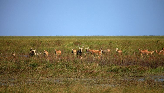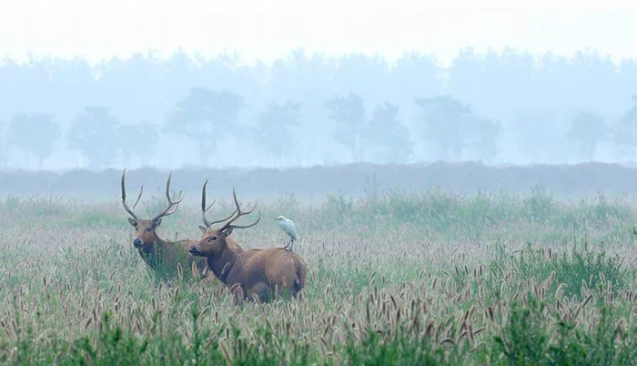 麋鹿国家级自然保护区位于江苏省盐城市大丰区境内,面积3000公顷,1986年建为省级自然保护区,1997年晋升为国家级,主要保护对象为麋鹿及其生态环境。麋鹿俗称“四不像”,角似鹿非鹿,头似马非马,身似驴非驴,蹄似牛非牛,是我国的特产。麋鹿原是苏北沿海的野生动物,历朝皆列为献给皇帝的贡品。