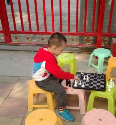 周奕宸从2016年春季在幼儿园上大班时开始学习国际象棋。最初抱着让他玩玩的心态,后来,据孩子的幼儿园老师老师介绍,周奕宸对国际象棋表现出极大的兴趣。刚学棋时如果输棋了还会哭鼻子。那个时候,我们正苦于为孩子培养一个爱好,国际象棋为我们打开了一扇大门。