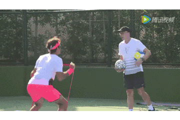 例如下图,费德勒利用弹力绳的火箭推(下蹲和肩上推同时进行),我们可以看到他的发动机很翘,动作非常强调髋屈伸功能,并且利用PAP=post activation potentiation后激活增强效应,在后面的运动中可以更好地利用髋的功能,并且募集更多的肌肉纤维。